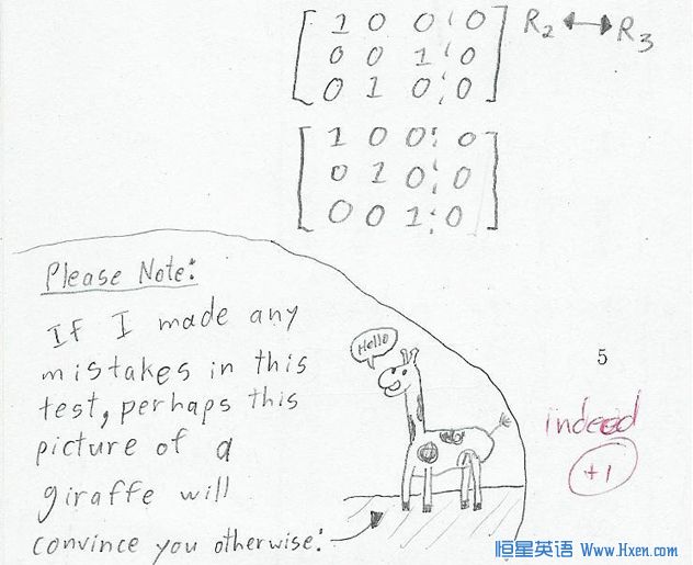 Please Note:If I made any mistakes in this test, perhaps this picture of a giraffewill convince you otherwise.老师看这里:如果我这次考试里有题目做错了,希望这只长颈鹿能让老师少扣我点儿分@@.