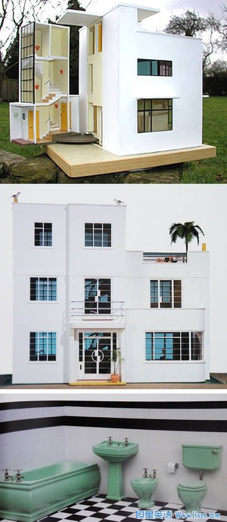 Henry Colbert是这种30年代屋子的设计师。他一年前造了几个屋子,你要是想买他的作品必须得排队。所有卖掉的屋子都是极具特色,因为买主总是想在他的设计上做一些改动。她在不同颜色的屋子里页设计了洗漱间用品。