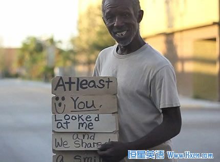 路人无动于衷时,流浪汉就会再掀起一块纸板,展示出另一句话。