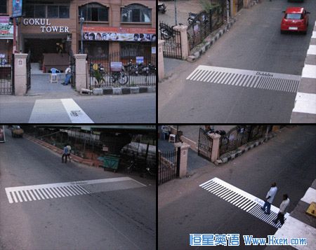 这个周末,印度一家美发沙龙附近创造出梳子形的斑马线。这是设计理念由路上一个临时的透明贴纸产生的。
