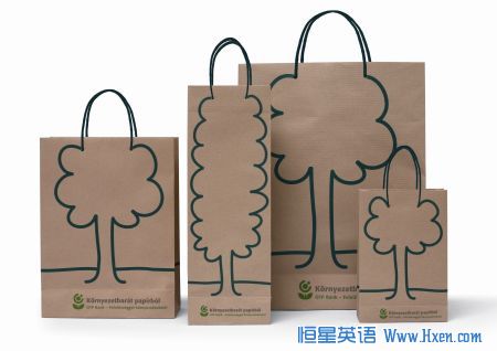 一家匈牙利银行的购物袋。袋子由再生纸制成,向人们展示该银行的环保理念。