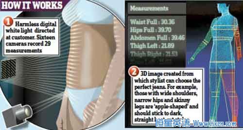 Previously available only in high-end shops, a 3D body scanner is being trialled on the high street – and promises to point shoppers to denim that fits and flatters。