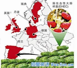 这些病例中,除了两个病例之外,都发生在最近居住或者去过德国北部的人群中,当时德国北部正处于细菌爆发的潜伏期(通常有3-4天),有一例患者曾经接触过德国北部的一位游客。