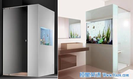 这款由Cesena设计,名为Plano Acquario的浴室的一侧墙壁里真真切切的镶嵌进了一个鱼缸。一边洗澡一边看着小鱼儿在身边游来游去很帅气有木有?