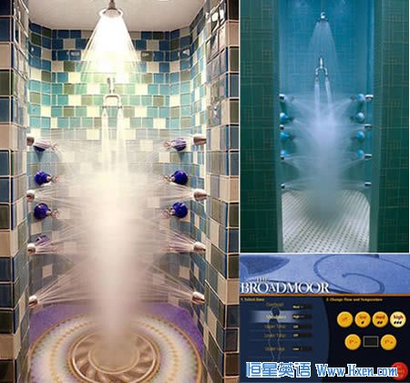 从图片里可以看到,用这个浴室洗澡可以享受18个喷头同时喷水。不过看看标签...10万美元,后面五个零啊。