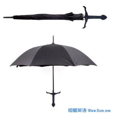 想想像一名骑士那种,用这把漂亮的宽把宝剑雨伞来避雨。36" 长的雨伞配有漂亮的阔剑型手柄会帮助你抵御严酷的天气。