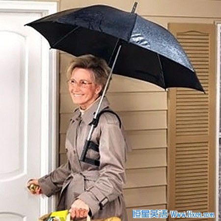这种特殊的伞有种独特的把手,它可以舒适地放到肩膀和手臂中间,这样双手就可以解放出来抱孩子,拿东西和包裹,或拿箱子等。