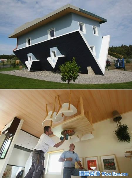 Klaudiusz Golos和Klaudiusz Golos建造了这个倒立的房子来参加德国Trassenheide的展览。房子显然无法居住,但是很有意思。