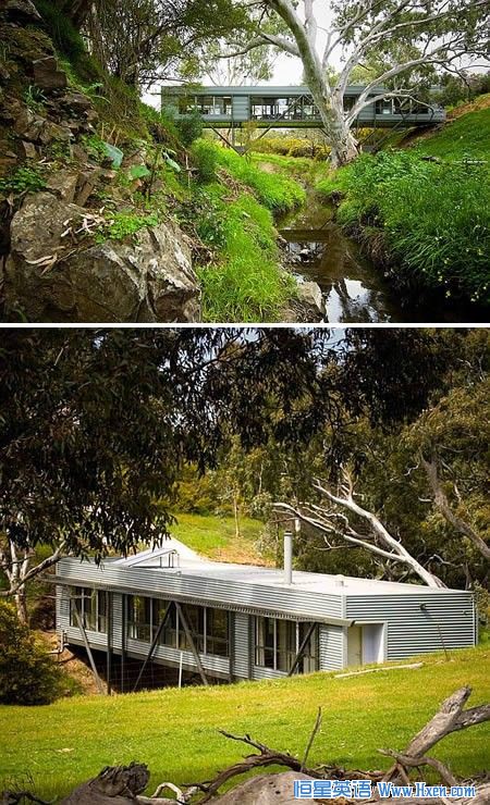 住在四处环绕绿色的桥中是种挑战。这就是桥屋。房子由2个钢框架构成,有着混泥土底板和钢制防水材料。屋顶由种植园用的管道做成。由玻璃组成的墙壁是透明的。