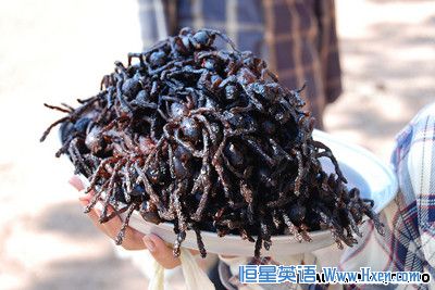 由于在70年代的时候Khmer Rouger的统治导致了大量的饥荒,人们开始吃炸过的蜘蛛来解决饥荒。本地人现在认为炸蜘蛛是一种可口的食物。
