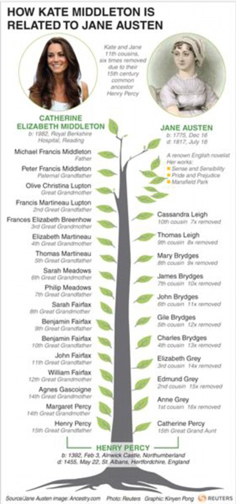 英国王妃凯特竟是简·奥斯汀远房亲戚