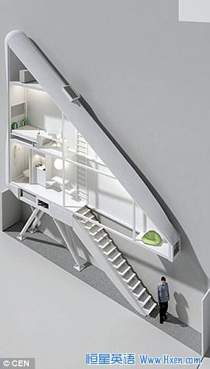 The home - complete with bedroom, lounge, bathroom and kitchen - is just under 60inches wide and is so narrow that the builders have abandoned a traditional staircase in favour of a ladder.Each of the four storeys goes back nearly 40ft with a room on each floor of the apartment, crammed into an alley between an old tenement block and a tower block in Warsaw, Poland.