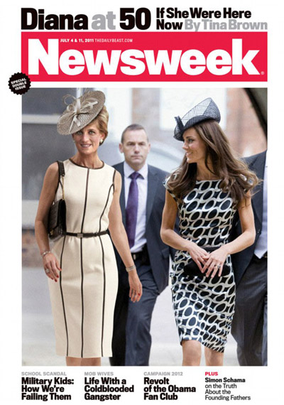 And the cover features a superimposed image of the Princess which has been digitally aged, walking next to her new daughter-in-law, Kate, the Duchess of Cambridge. Still trim, with barely a few wrinkles the picture shows Prince William's wife giving her mother-in-law an admiring glance.The article - entitled Diana at 50 - is written by British journalist, Tina Brown, editor-in-chief of Newsweek.