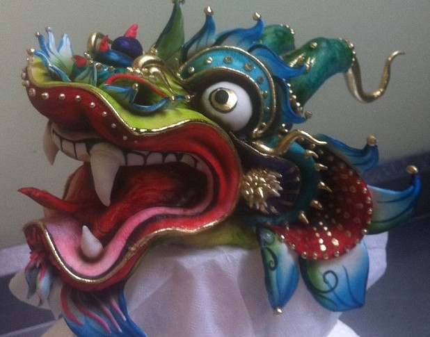 Labour of love: The team spend hours coming up with a concept of the cake, baking the sponges, designing and carving the designs, like this oriental dragon