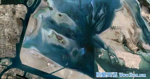 The word 'HAMAD' measures 1,000 metres high and is a staggering two miles long from the 'H' to the 'D' on the Al Futaisi island.