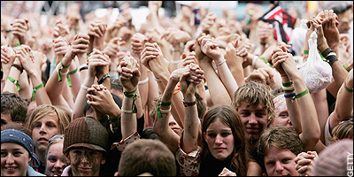 The festival is held in a huge field. People can sleep in tents, or tipi's which are a special kind of round tent, and some will barely sleep for 3 days so they can listen to all their favourite/ or new bands!音乐节在一个宽广的场所举行。人们睡在帐篷或者叫做tipi's的特殊的圆型帷帐里。有些人甚至几乎三天都不睡觉,这样他们就可以听到所有他们喜欢的乐队或新乐队表演。