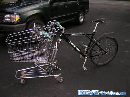 看下这个有创意的自行车主是如何将自行车和购物车改装在一起的。这个懒汉既能运东西,同时也能骑。