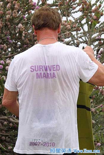 The former governor of California made light of his pending divorce with Maria Shriver by wearing a T-shirt bearing the slogan "It's Time" on the front and "I Survived Maria" on the back, with the date 2007 -2010 printed under it, with the first year cross out and replaced with 1977, the year the couple started dating at the turn of the year.