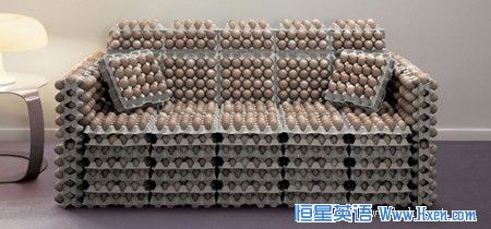 SofaEven though it is possible to recreate this couch using egg cartons, it will be very difficult to have a seat without cracking them! 用装鸡蛋的纸板做成的沙发虽然能造出这样的沙发,但是做上去想不压碎纸板是很困难的。