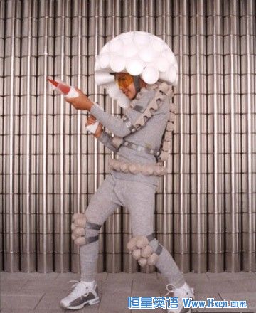 花很少的钱装一套《空间侵入者》的服装来入侵地球。这仅需要一些纸杯,装鸡蛋的纸板和一把甜点做成的"射线枪"。