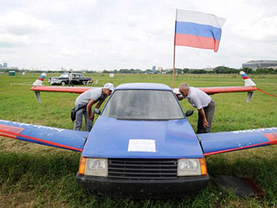 这位俄罗斯的发明家来自于莫斯科以南93英里的卡卢加市,他用更轻的材质取代了这辆1987年产的ZAZ Tavria汽车的车门与引擎盖,并加装上了机翼。