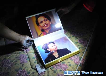 A bizarre photograph album filled page to page with pictures of Condoleezza Rice has been found at the compound of Colonel Gaddafi.