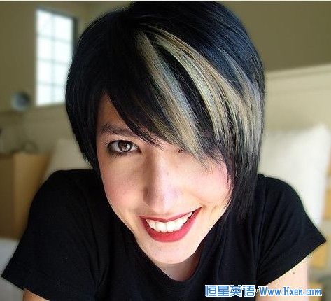 朋克streak发式,前刘海遮挡一只眼睛,黄色的发缕突出了年轻的活力,是当今城市年轻人的热爱。