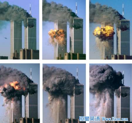 8:46 a.m.: Flight 11 crashes into the North Tower of the World Trade Center (WTC). 11号班机撞向世贸中心北塔。