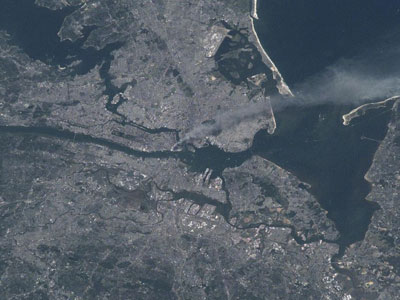 在姊妹楼倒塌之后,美国宇航局监控着曼哈顿上空的地区。第二天他们的卫星也拍下来了烟雾上升的照片。