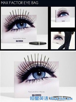 这种有些令人不安的“眼袋”,是由Leo Burnett Frankfurt广告公司于2009年的时候构思和制作的。目的在于帮助Max Factor(中译为:蜜丝佛陀)化妆品公司推广它们的假睫毛睫毛膏。这种可爱又恐怖的袋子,只在指定的百货公司派发,并随袋附送免费的试用睫毛膏。