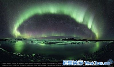 摄影师们既展示了夜空的美,也揭露现今城市严重的光污染现象。在“审美”组的评选结果里,史黛芬妮·维特的作品获得了冠军。她捕捉到了冰岛上空的北极光在银河里闪耀的瞬间。