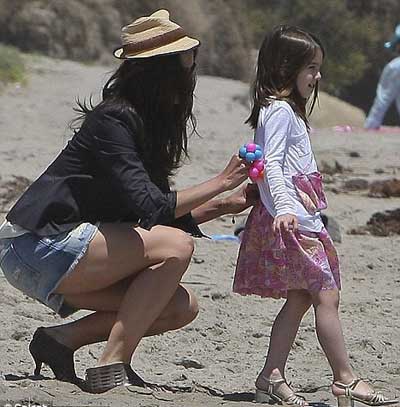 High heels on the beach? Katie Holmes and daughter Suri Cruise in the sand