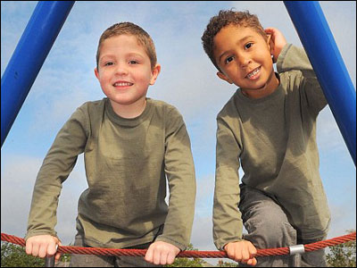Kaydon and Layton Wood are just five yet already they are local celebrities. In fact, the twins have been making headlines in regional newspapers since they were born – because one is white and the other black.