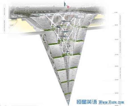 Architects have designed an incredible 65-storey 'earth-scraper' which plunges 300 metres below ground. The stunning upside down pyramid in the middle of Mexico City is designed to get around height limits on new buildings in the capital.
