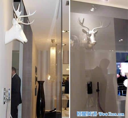 The designers Samuele Mazza and Alessandro La Spada created a showerhead that resembles a moose head wall mount. 这款驼鹿浴室淋浴喷头由Samuele Mazza和Alessandro La Spada共同设计完成。