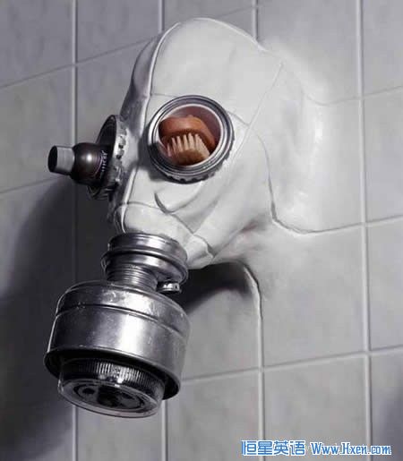 Chris Dimino决定打破陈旧的淋浴喷头设计,因此创意的设计了这位戴防毒面具的老兄从墙里出来的造型。
