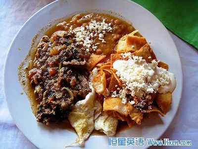 27. 墨西哥早餐——图中可爱的盘子中有牛肉,Chilequiles和其他一些能在曼萨尼约吃到的什锦食品。玉米脆饼,奶酪和豆类的特色也很浓郁并且美味,辣辣的早餐是必须的。