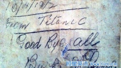 这封信被伯克家族保存了近一个世纪,信上写着:“写自泰坦尼克号船上,所有的人,再见了,来自科克格兰迈尔的伯克。”