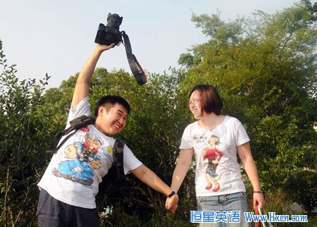 Shanghai natives Tom Lu, left, and Bao Chen have been together for more than one year. Bao said she bought the T-shirts online and gave them to Lu because she thinks her man is as strong as Popeye.