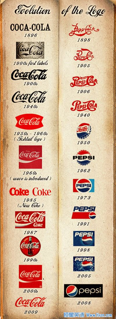 Both brands have made tons of changes to their logos throughout their histories. Neither look anything like they did originally.在漫长的发展史中,可口可乐和百事都对自己的商标做出了很多改变。目前使用的商标一点都不像原始商标了。 11/12 首页 上一页 9 10 11 12 下一页 尾页
