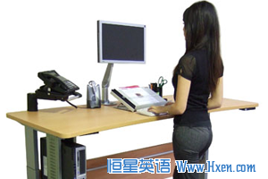 谷歌公司(Google Inc.)、Facebook Inc.以及其它公司越来越多的员工将他们的坐式办公桌换成了立式。这些员工说站着办公令他们感到更加舒适,精力也更加充沛。宣称久坐不动会增加健康风险的医学报告也是促使他们这么做的一个原因。