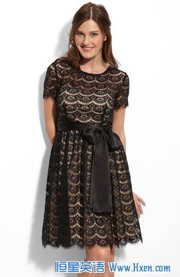 这款Donna Morgan带有廓型的黑色蕾丝礼服,性感而娴静。
