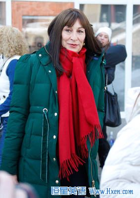 选择喜庆的颜色,就像Anjelica Huston的大红围巾,可以给冬天笨重的衣着平添乐趣。 小贴士:选择一条长款带流苏的围巾——羊绒,混纺,羊毛或编制的。