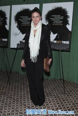 Olivia Palermo的白色围巾与她的黑色裤装相得益彰,正适合这种社交晚会。 小贴士:将长围巾从前往后绕过脖子一圈,在胸前打个结,将围巾两端悬垂于胸前。