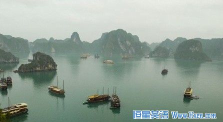 In Vietnam's Gulf of Tonkin, Ha Long Bay is dotted with more than 1,600 islands and limestone islets. Steep rocks and thick jungle have helped the islands avoid human impact -- many contain mysterious grottoes and caves, the result of 500 million years of formation and erosion.