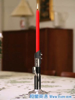 这款烛台模仿的是达斯•维德的光剑,它托着的是一支蜡烛而不是等离子光剑。最重要的是这是款独一无二的烛台。