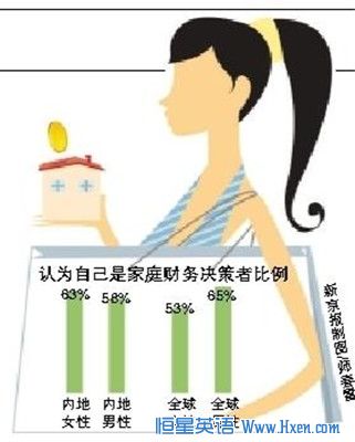 约有63%的中国女性表示,家里的财务规划几乎都是她们做的,这个比例在亚洲国家女性中是最高的。