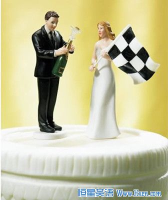 站在终点,手拿方格旗的新娘