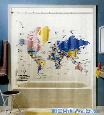 世界地图浴帘