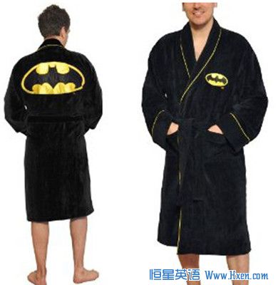 这件蝙蝠侠浴衣不会让你瞬间变超人,但却能让你体验完美缝纫带来的舒适感觉。背部的大片刺绣是这件华丽的男士浴袍的最大特点。